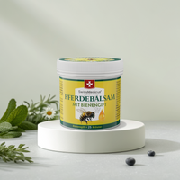 Koňská Mast ® se včelím jedem je unikátní produkt, který spojuje osvědčený účinek 25 druhů bylin s účinkem včelího jedu. Včelí jed slouží jako přírodní látka ke snížení citlivosti. Tato receptura zároveň obsahuje zvýšený podíl bylin, o kterých je známo, že zlepšují pružnost a hybnost. Koňská Mast se včelím jedem je vhodná k masáži pokožky v oblasti namožených zad a kloubů. Díky použití speciální směsi ingrediencí může tento balzám chladit i hřát zároveň.